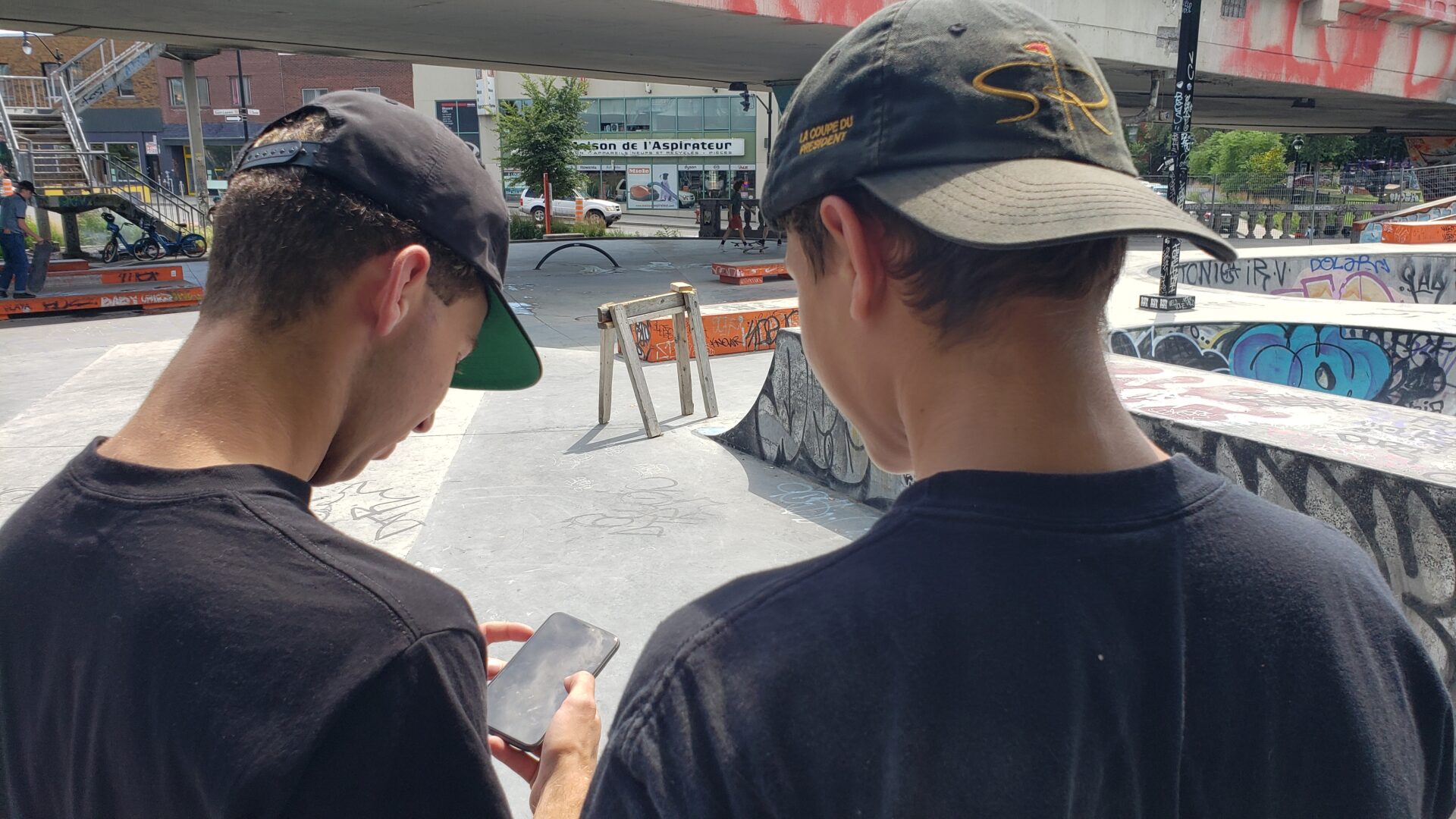 Pour Chris et Antoine, croisés au skatepark en-dessous du viaduc Van Horne à Montréal, l’objectif est différent quand ils se filment avec leur iPhone.