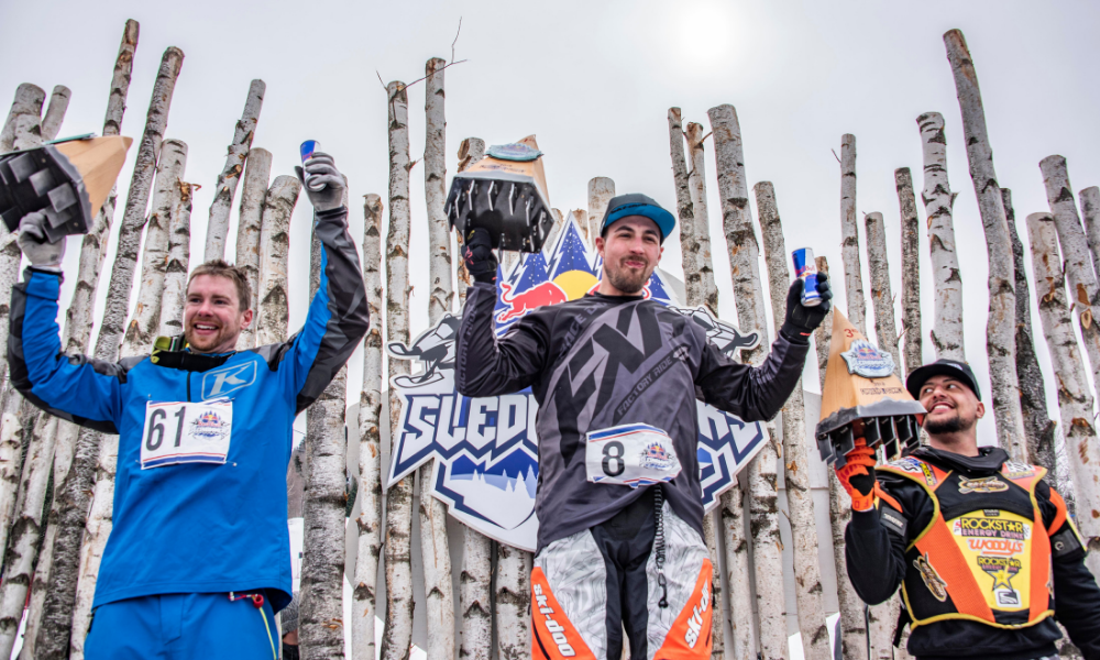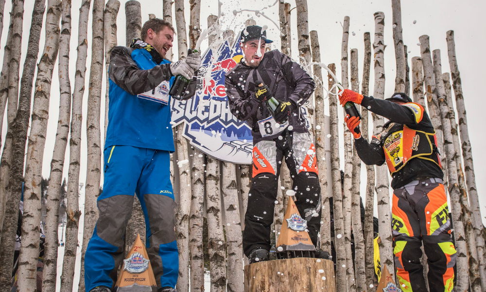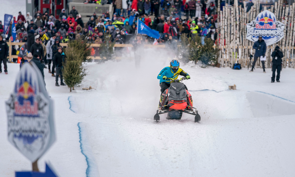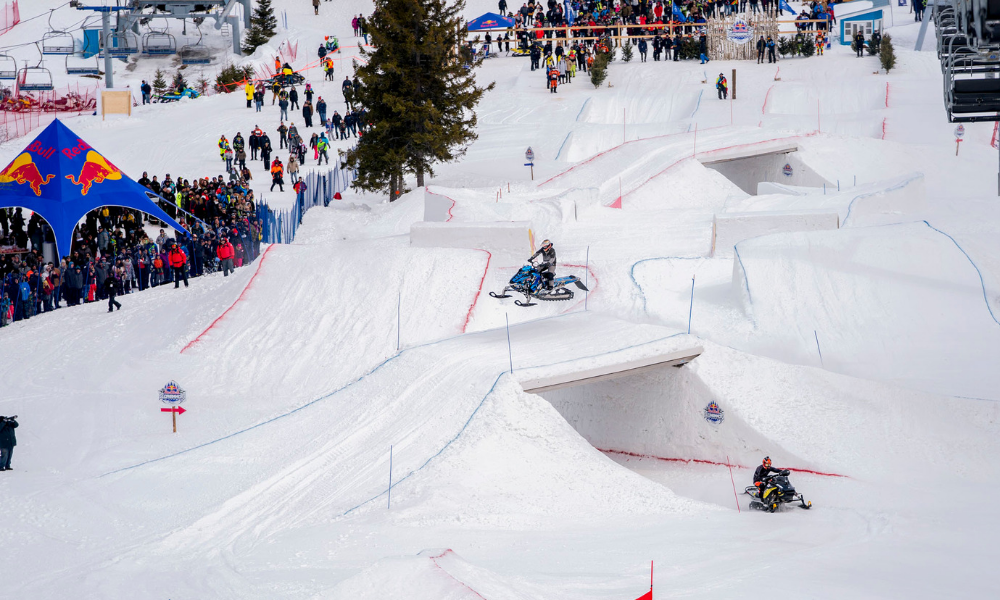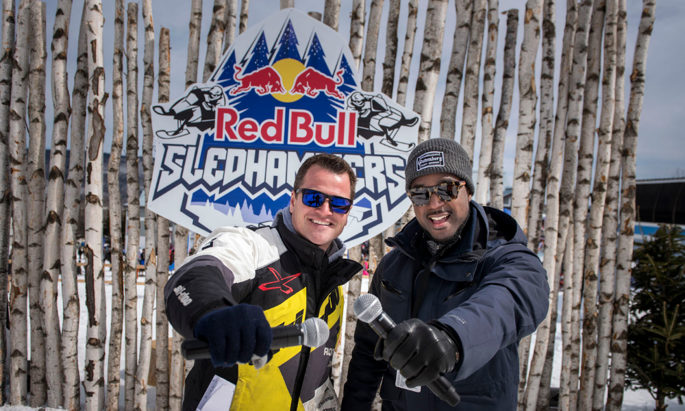 Red Bull Sledhammers se déroulait sur une piste de cross-track innovante composée de deux parcours identiques assis côte à côte, permettant ainsi une compétition en mode 1 contre 1. Les deux voies comprenaient plus de 10 caractéristiques que les coureurs parcouraient en grimpant à 110 m en altitude de la ligne de départ jusqu’à la ligne d’arrivée. Les caractéristiques ? Des virages relevés, un pont, des sauts d’écart, des transferts et des rouleaux.