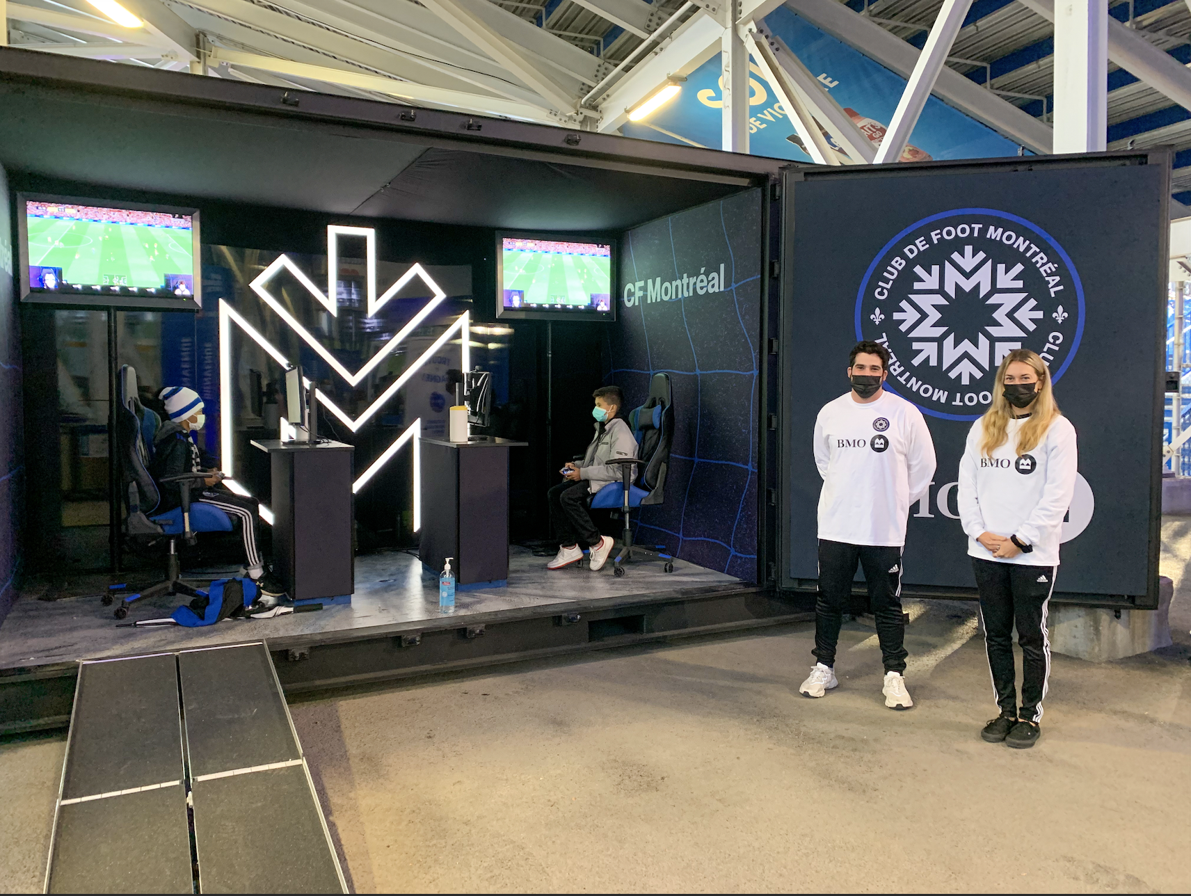The CF Montreal team mandated us to develop an activation strategy for the last 5 home games. The objective was to conceptualize, produce and activate 2 key spaces in the BMO space at Saputo Stadium.
